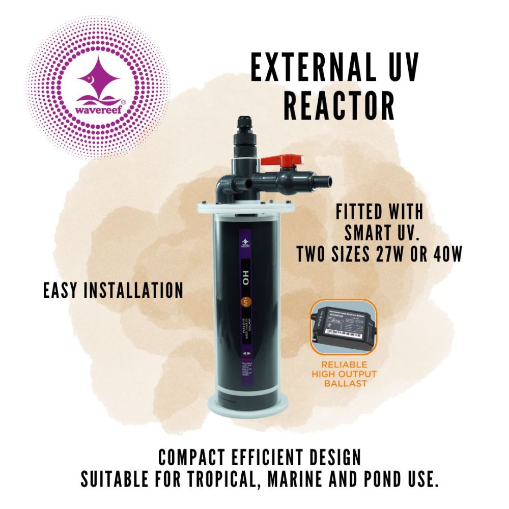 The Wavereef External UV reactor is a quick and easy plug and play unit that can be used in saltwater or freshwater aquariums and ponds.